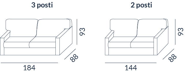 Divano presente in versionefissa e a letto completamente sfoderabile. I cuscini bracciolo sono in dotazione con lo stesso rivestimento dei cuscini seduta e schienale.