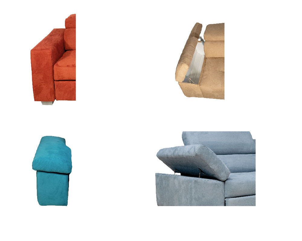 Divano non sfoderabile con vasta scelta di componibilità e poggiatesta reclinabili.