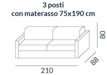 3 posti con materasso 75×190 cm.